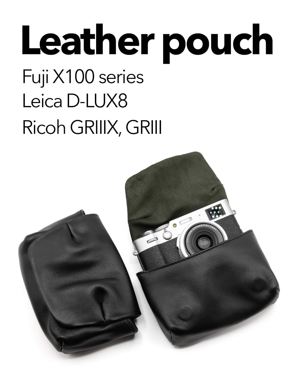 Pouch หนังแท้ จาก MeKee เหมาะสำหรับกล้อง Fuji X100 series, Fuji X-Half, Leica D-LUX8 ที่ไม่ใส่อุปกรณ์เสริม หรือ Ricoh GRIV/GRIIIX/GRIII ติดกริปหรือที่พักนิ้ว หรือ Leica Minilux เป็นซองหนังกล้องน้ำหนักเบาที่เหมาะสำหรับใช้เดินทางในวันเบาๆ ไม่ต้องแบกกระเป๋ากล้องที่มีน้ำหนักมาก ใส่ในกระเป๋าทั่วๆไปได้เลย ป้องกันรอยขูดขีด