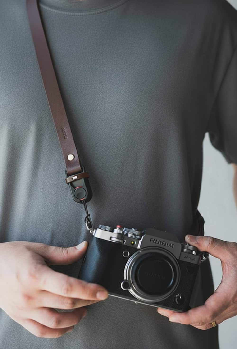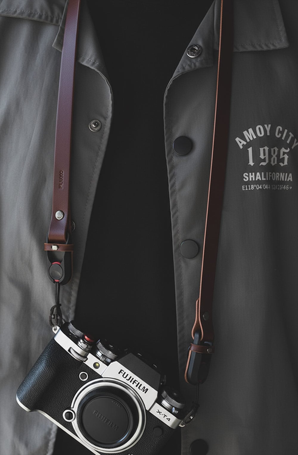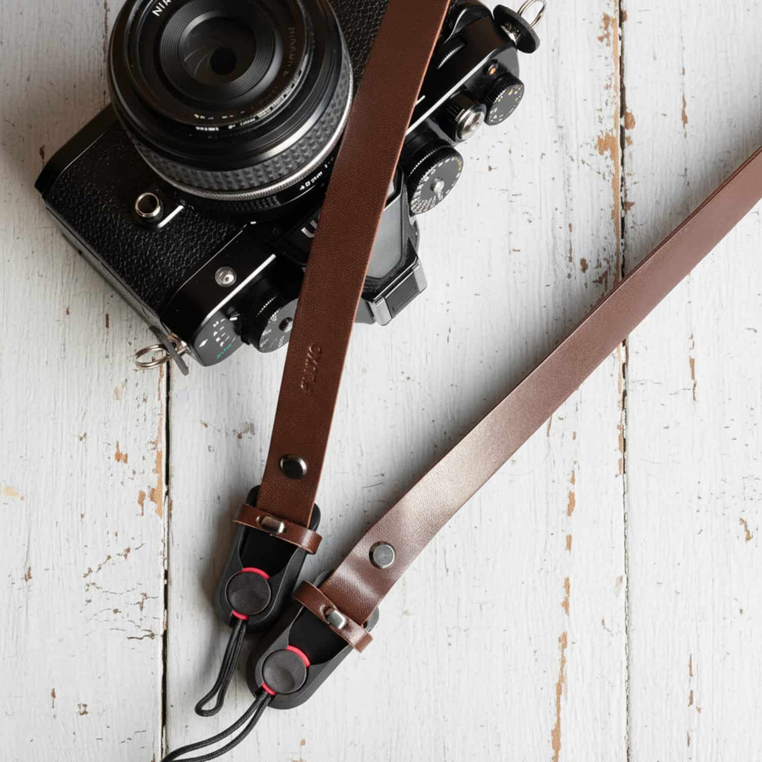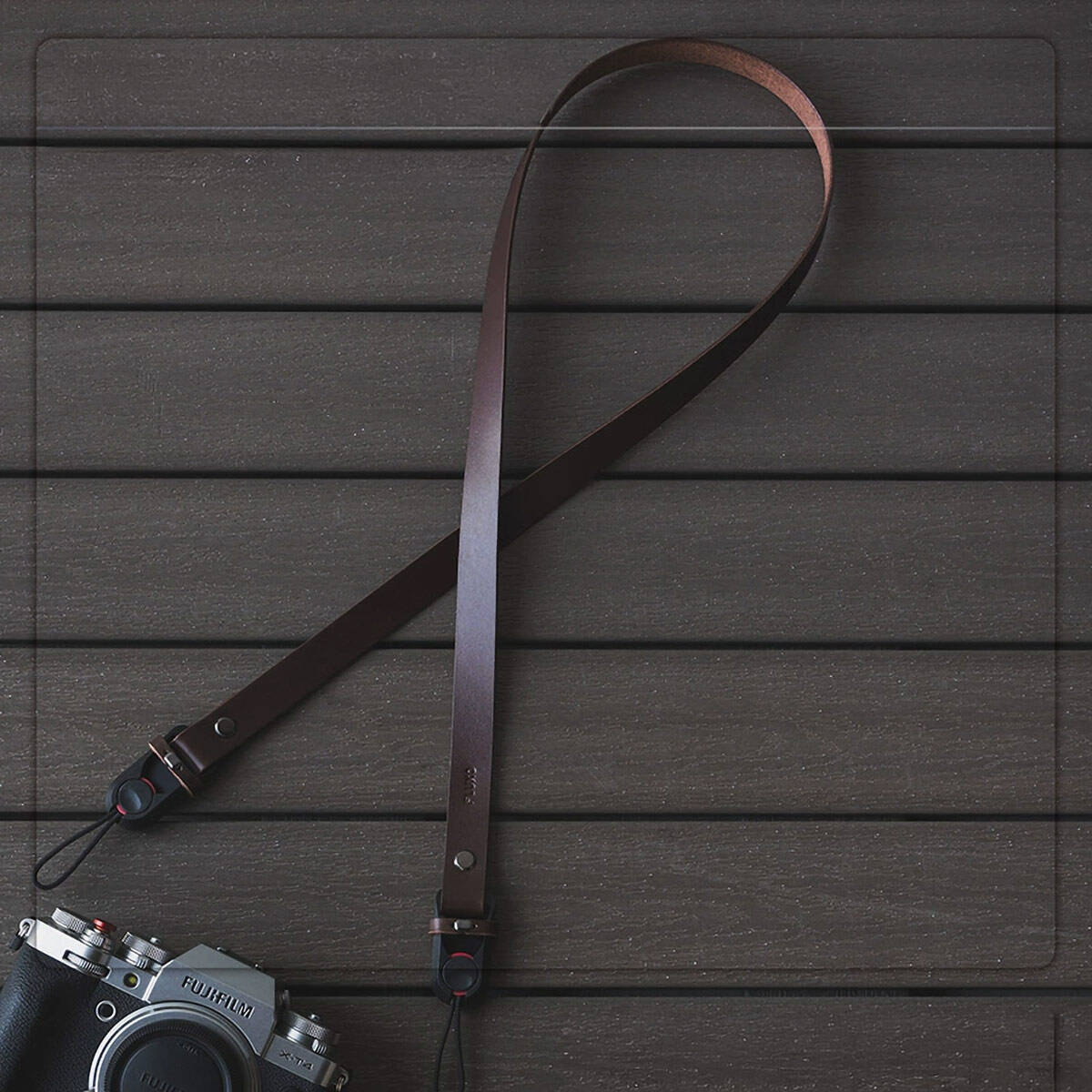สายคล้องกล้อง หนังแท้ Fluxo สีน้ำตาลเข้ม Dark Brown พร้อมหัวต่อปลดเร็ว