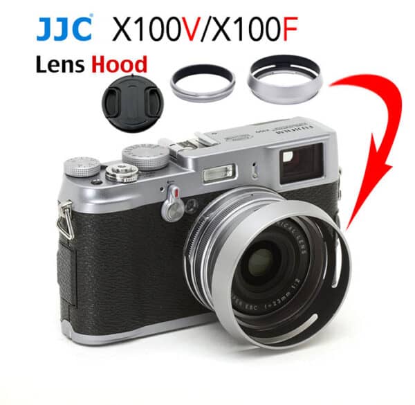 ฮูด Fuji X100VI X100V สีเงิน ฮูดกลม JJC LH-JX100 Silver Hood พร้อมฝาปิดเลนส์