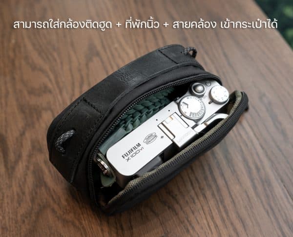 - สามารถใส่กล้อง Fuji X100 series ติดฮูด + ที่พักนิ้ว + สายคล้องกล้อง